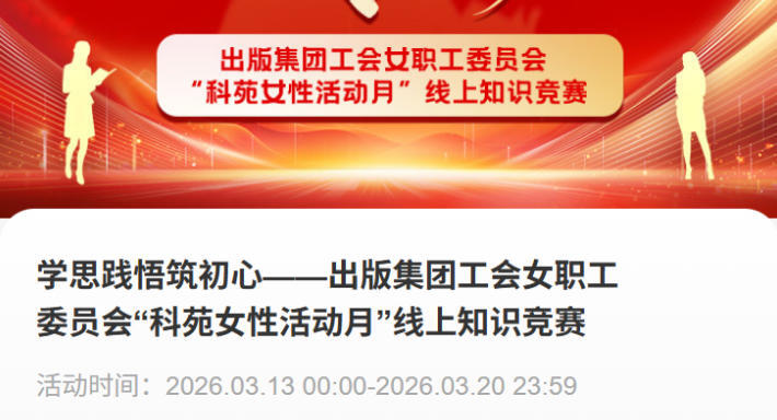 “学习答题”强思想:通过制作发送学习资料,组织出版集团各级工会及妇女组织深入学习贯彻党的二十大和二十届历次全会精神、持续学习领会习近平总书记关于注重家庭家教家风建设的重要论述精神,深入学习贯彻院党组冬季扩大会议和院工作会议精神,提升各级工会的思想引领力。在学习的基础上,3月13日至20日,出版集团举办了线上答题活动,近500名女职工参加。活动以赛促学、以学促干,引领女职工坚定爱党爱国信念,不断增强责任感、使命感、紧迫感,凝聚起奋进“十五五”、建设科技强国的巾帼力量。